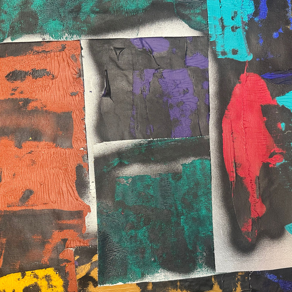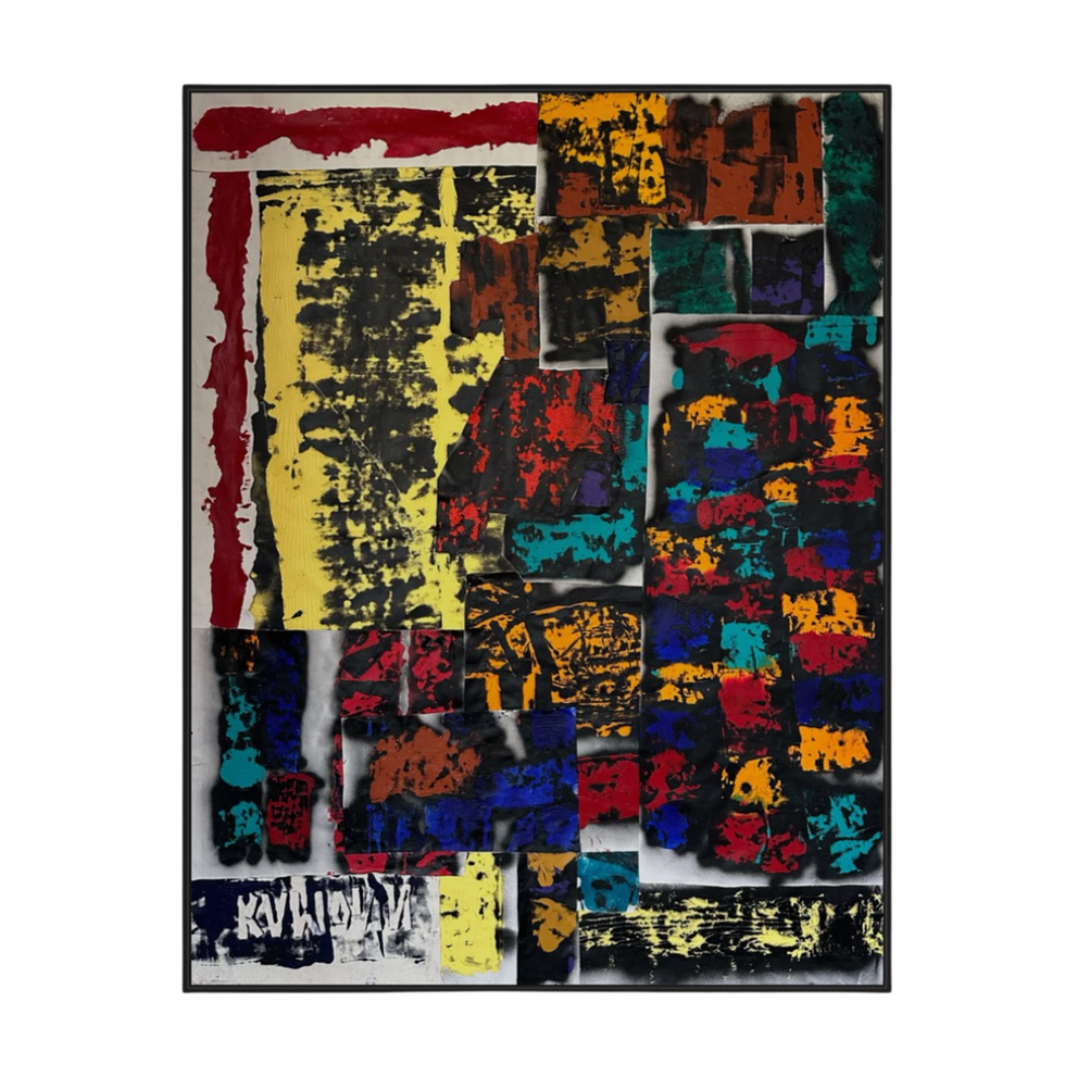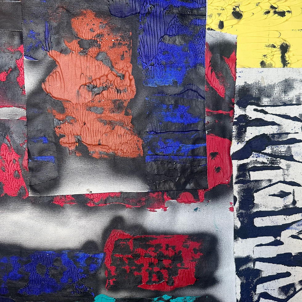 - Medium: acrylic and aerosol - composition made by gluing scraps of canvas